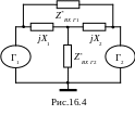 В отличие от схемы рис.16.3 в схеме рис.16.4 оба генератора и одно из сопротивлений могут иметь, как показано на рис.16.4, соединение с землёю (корпусом), что является важным преимуществом схемы рис.16.4.