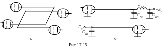 На рис.17.15 показана упрощенная реализация рассматриваемого вида связи в ламповых генераторах с контурами из отрезков двухпроводных линий (рис.17.15,а) и полосковых линий (рис.17.15,б). В случае полосковых линий длины контуров обычно делают одинаковыми. Для этого подбирают волновые сопротивления линий, соответственно и диаметры проводов, чтобы выполнялось условие: