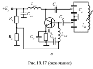 В представленных схемах (рис.19.17) показано использование транзисторов n-p-n типа. Аналогично выполняются схемы на транзисторах p-n-p типа. Отличие только в полярности источника коллекторного питания относительно электродов транзистора. Как и в ГВВ, в транзисторных АГ наиболее широко применяются транзисторы n-p-n типа.