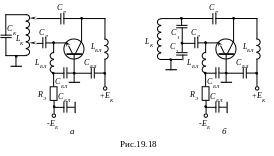 В схемах (рис.19.14) заземлён один конец катушки индуктивности контура, а в схеме (рис.19.14,а) также заземлён ротор конденсатора переменной ёмкости.