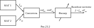 Общее число рабочих частот возбудителя оказывается равным N = 2n1n2, так как с каждым КвР первого КАГ каждый КвР второго КАГ даёт две частоты: суммарную и разностную.