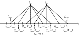 i = 1, 2,…, n2. Подбирая соответствующим образом частоты КвР, можно обеспечить необходимый набор (сетку) частот возбудителя. На рис.23.3 показан пример образования сетки частот при использовании двух высокочастотных (n1 = 2) и двух низкочастотных (n2 = 2) КвР.