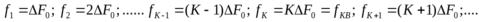 Колебания от КАГ поступают на делитель частоты с коэффициентом деления К, на выходе которого получаются колебания с частотой ΔF0, равной интервалу между рабочими частотами возбудителя (шаг сетки частот). Из этих колебаний в умножителе вырабатываются короткие импульсы, следующие с частотой ΔF0. Частотный спектр этих импульсов, состоящий из гармоник частоты их следования