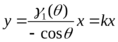 Как видим, зависимости y(x) при θ = const представляют прямые линии, выходящие из начала координат под углом, тангенс которого равен k. При θ = 180° k = 1, при θ = 90°