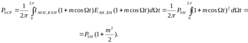 Согласно последнему соотношению при одной и той же мощности в режиме несущей частоты (режим молчания) при анодной (коллекторной) модуляции мощность рассеяния на аноде лампы (коллекторе транзистора) в 5…6 раз меньше, чем при модуляции смещением (сеточной и базовой модуляциях).3 Однако режим несущей частоты с точки зрения теплового режима анода или переходов транзистора не является самым опасным. Более тяжёлым является средний за период модулирующего сигнала режим, когда