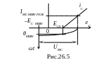 В режиме минимальной мощности ток сетки (аналогично ток базы) достигает наибольшей величины и максимально нагружает источник возбуждения. В то же время очевидно, что в минимальном режиме большая мощность возбуждения не нужна, а при 100% модуляции вообще в минимальном режиме можно обойтись без какой-либо мощности возбуждения. Действительно, при 100% модуляции в минимальном режиме выходной ток равен нулю, то есть IA1 = 0 (или IК1 = 0), но такое значение выходного тока получается также и при снятии возбуждения, то есть наличие возбуждения в минимальном режиме при 100% модуляции не является необходимым. Поэтому при расчёте генераторов с анодной (коллекторной) модуляцией источник возбуждения (в радиопередатчике это каскад, стоящий перед модулируемым генератором) рассчитывается на мощность возбуждения, найденную при расчёте максимального режима, то есть на минимальную величину мощности возбуждения PВОЗБ = PВОЗБ МАКС РЕЖ. Это приводит к тому, что в режиме несущей частоты, а особенно в режиме минимальной мощности при ЕА,К → 0, амплитуда напряжения возбуждения модулируемой ступени UМС, МБ несколько уменьшается за счёт большей загрузки источника сигнала возбуждения – предыдущего каскада, что способствует спрямлению нижнего участка СМХ. При этом в случае транзисторного генератора с коллекторной модуляцией начало СМХ подтягивается к началу координат (рис.26.2,б). Напомним, что изменение амплитуды напряжения возбуждения характерно для режима усиления АМ колебаний.