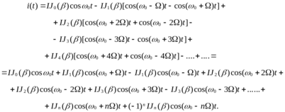 , где n = 0, 1, 2, 3, …, амплитуды которых связаны с амплитудой немодулированного колебания функциями Бесселя первого рода n-го порядка с индексом