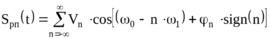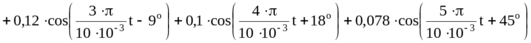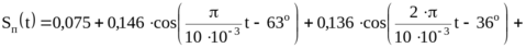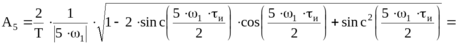 Заданная последовательность треугольных видеоимпульсов будет описана в виде (для краткости возьмем первые пять членов ряда):