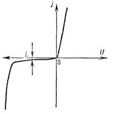 Рис. 3. Вольт-амперная характеристика (ВАХ)v - п- перехода.