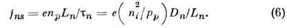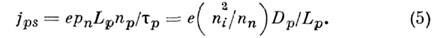 1,наоборот, в ф-ле (7) можно сохранить только экспоненциальный член, описывающийтермоэмиссию носителей из областей, где они являются основными, в области, <где они становятся неосновными и где рекомбииируют за времена