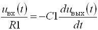 Дифференцирующий усилитель получается в том случае, когда резистор R1 и конденсатор С1 поменять местами (рис. 3.57).