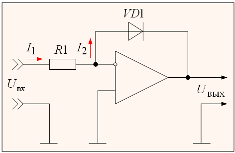 Логарифмирующий усилитель получается в том случае, когда вместо резистора