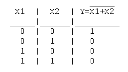 Таблица истинности функции ИЛИ-НЕ имеет вид: