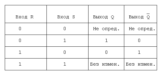 тинности. S-вход установки (Set), R-вход сброса (Reset).