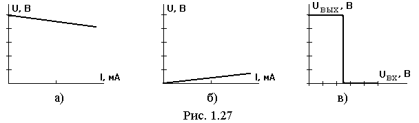Зависимости выходного напряжения от тока нагрузки в состоянии логической единицы и логического нуля на выходе элемента показаны соответственно на рисунке 1.27,а,б.