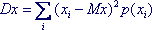 Сумма берется по всем значениям, которые принимает случайная величина. Ряд должен быть сходящимся (в противном случае говорят, что случайная величина не имеет дисперсии)