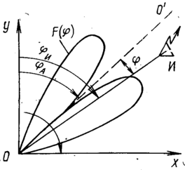 Амплитудный метод сравнения реализуется при использовании антенны, имеющей два одинаковых главных лепестка с узкими ДНА F1(j), F2(j), максимумы которых смещены в пространстве на углы ±j0 относительно некоторого среднего направления (рис. 6).