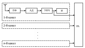 Структурная схема многоканального приемника представлена на рис. 4. Отдельный канал многоканального приемника прямого усиления