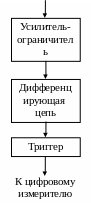 При этом особенность измерений состоит в необходимости выделения четких границ ТХ по моментам перехода гармонического колебания через нуль. Эту функцию выполняет схема, состоящая из усилителя-ограничителя, дифференцирующей цепи и триггера. При достаточно больших значениях коэффициента передачи усилителя-ограничителя форма сигнала на его выходе близка к прямоугольной, т.е. можно считать, что фронт импульсов после дифференцирующей цепи почти совпадает с моментами перехода гармонического сигнала через нулевой уровень.