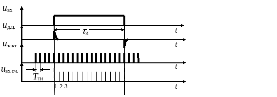 В результате в счетчике записывается число N тактовых импульсов, которое пропорционально длительности tИ входного импульса с точностью