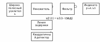 Структурная схема приемника с корреляционным измерителем показана на рис. 9. Можно показать, что после прохождения низкочастотного фильтра сигнал будет описываться выражением