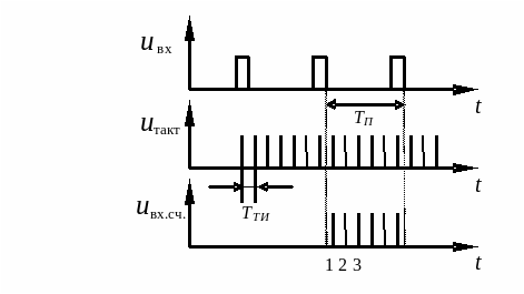 В результате в счетчике записывается число N тактовых импульсов, которое пропорционально длительности tИ входного импульса с точностью