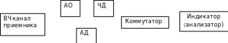 Если на вход разведывательного приемника поступает ЧМ-сигнал, то на выходе ЧД будет переменное напряжение, а на выходе АД – постоянное. При поступлении АМ-сигнала ситуация будет обратной. Коммутатор пропускает на выход только переменное напряжение, форму и параметры которого можно определить по изображению на экране индикатора или автоматически в специальном анализаторе.