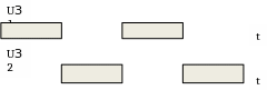 ∆f1 и ∆f2, соответственно. В зависимости от несущей частоты сигнал uм(t) проходит через один из фильтров и попадает на вход соответствующего амплитудного детектора. Чтобы определить, через фильтр какого диапазона прошел сигнал, на вторые входы детекторов из схемы «Коммутатор диапазонов» подаются противофазные импульсы U31 «Запрет 1» и U32 «Запрет 2», запирающие поочередно один из детекторов (рис. 6).