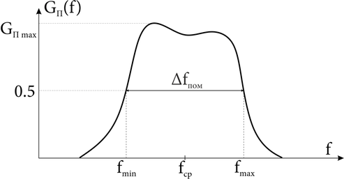 Спектр гармонического сигнала – 1 несущая частота (δ-функция). Шириной спектра помехового сигнала называют область частот.