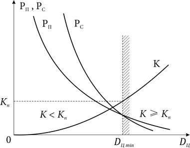 Значение Dц , при котором K = Kп , является граничным и называется Dц min