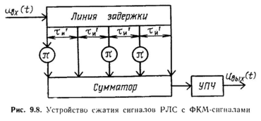 Обработка ФКМ сигнала осуществляется с помощью линии задержки с отводами, сигнал на каждом последовательном отводе появляется спустя время τсж. При этом на каждом выходе линии задержки включается фазовращатель.