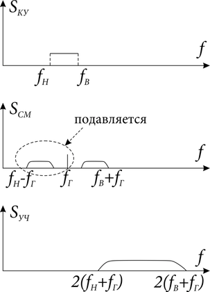 Затем происходит подавление частоты гетеродина, а также левой половины спектра.