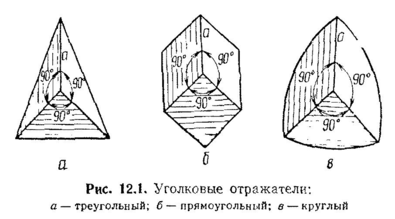 Для треугольных, прямоугольных и секторных уголковых отражателей максимальные ЭПР соответственно будут (a – длина ребра отражателя):