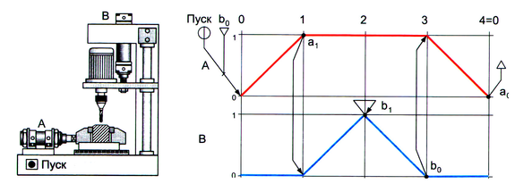 Рис. 1.14. Сверлильный полуавтомат и его диаграмма