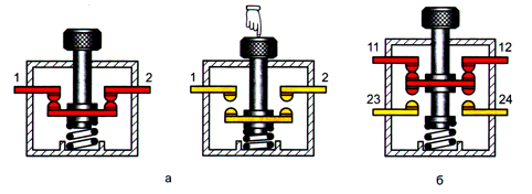 Рис. 2.3. Кнопочные выключатели: а) одноконтактный;