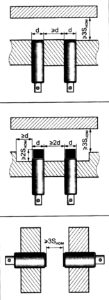 бесконтактные выключатели могут быть встроены в металл на одном уровне с торцевой чувствительной поверхностью без изменения рабочих параметров. расстояние между двумя соседними выключателями должно составлять не менее величины диаметра датчика.