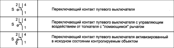 Рис. 2.7. Условные графические обозначения контактов путевых выключателей