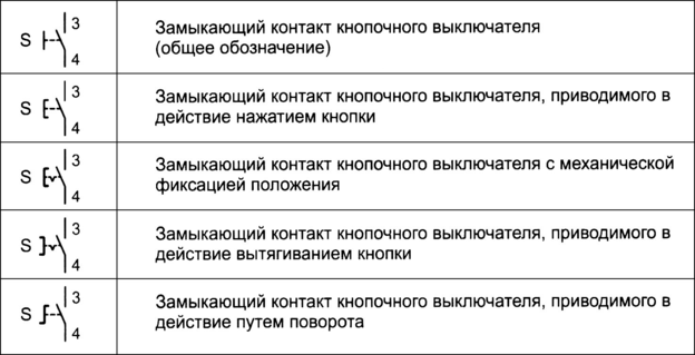 Рис. 2.4.Обозначения контактов кнопочных выключателей