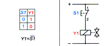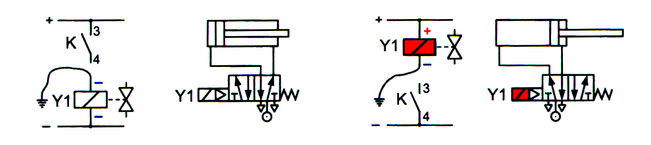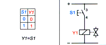 Электрический сигнал не поступает на привод распределителя Y1, если не нажата кнопка S1; в противном случае он подается на привод Y1.