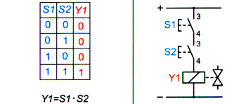 Для реализации логической функции И устройства ввода электрических сигналов располагают последовательно в одной электроцепи.