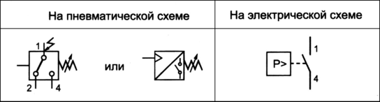 Условное обозначение реле давления на пневматических и электрических схемах показаны на рис. 2.24.