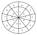 Значения секторов для внешнего диска нам известны – это цифры от 0 до 9, а значения внутреннего диска мы найдем, используя то свойство, что каждая вторая цифра должна быть 0, 1 или 2: составим 5 множеств 012, 234, 456, 678 и 890 и будем поочередно в каждое из них записывать каждую вторую цифру шифртекста. Если одна и та же цифра лежит в двух множествах – значит она должна стоять на внутреннем диске напротив цифры, которая является пересечением этих двух множеств. Если цифра лежит только в одном множестве – значит она стоит напротив цифры внешнего диска, которая стоит в середине обозначения этого множества.