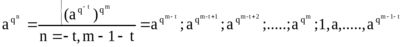 ord= qm-1 = p2m-1; корень некоторого многочлена GF(p)(x) G(x) степени rm (то есть примитивный элемент мультипликативной группы поля GF(qm))