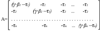 Стратегиями игроков являются скорости движения, а в качестве выигрыша игрока 1 в ситуации (αi, βi) примем производительность поиска αij=αiδij, i=1,..3, где δij – элемент матрицы D. Тогда задача выбора скоростей игроков при поиске-уклонении может быть представлена матричной игрой с матрицей А= αij .