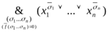 где константа cσ1, ...,σn равна 1 или 0 в зависимости от того, входит конъюнкция