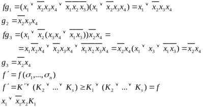 g(x1, x2,...,xn) называется импликантом функции f(x1, x2,...,xn), если для всякого набора (σ1,….,σn) значений аргументов выполнено неравенство