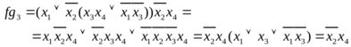 Последнее выражение представляет собой с. д. н. ф. функции, реализуемой формулой, и совпадает (с точностью до перестановки конъюнкций) с с. д. н. ф., выписанной выше по таблице 1.1, задающей эту функцию.