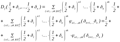 Используя эти равенства и представление двоичной функции в виде ряда Фурье получаем представление двоичной функции через коэффициенты ее статистической структуры: