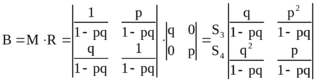 снова образует матрицу, строки которой соответствуют невозвратным состояниям, а столбцы - всем поглощающим состояниям. В теории ДМЦ доказывается, что матрица В определяется следующим образом: