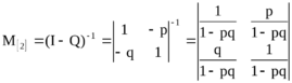 Если необходимо получить общее среднее количество раз попадания системы в то или иное состояние до поглощения, то фундаментальную матрицу М необходимо умножить справа на вектор-столбец, элементами которого будут единицы, то есть